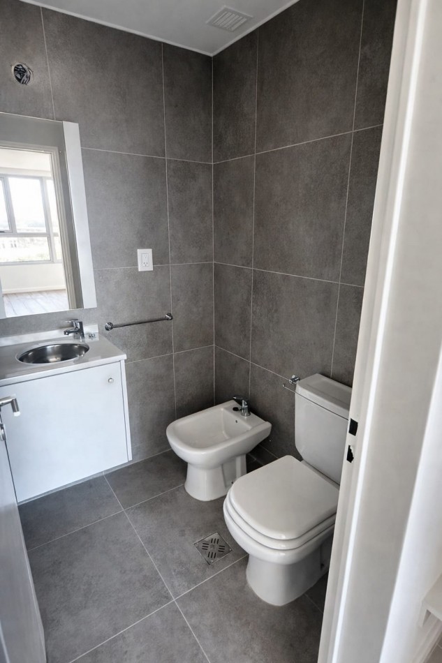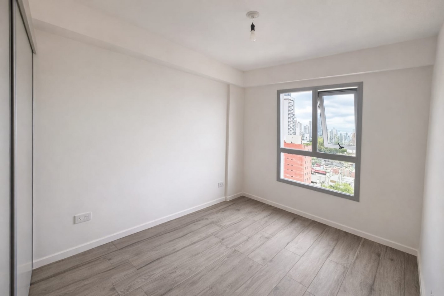 Además cuenta con amplio estar comedor, balcón con vista panorámica de la ciudad, cocina sectorizada con barra, dormitorio con placard y baño completo.