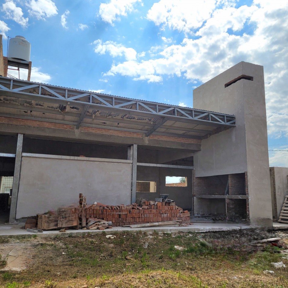 La vivienda se desarrolla sobre un terreno de 11,40 mts x 28 mts, ubicado a 150 mts de la ruta, próximo al ingreso sur de la localidad. Es un barrio en pleno crecimiento con calle asfaltada y todos los servicios (agua, gas y cloaca)