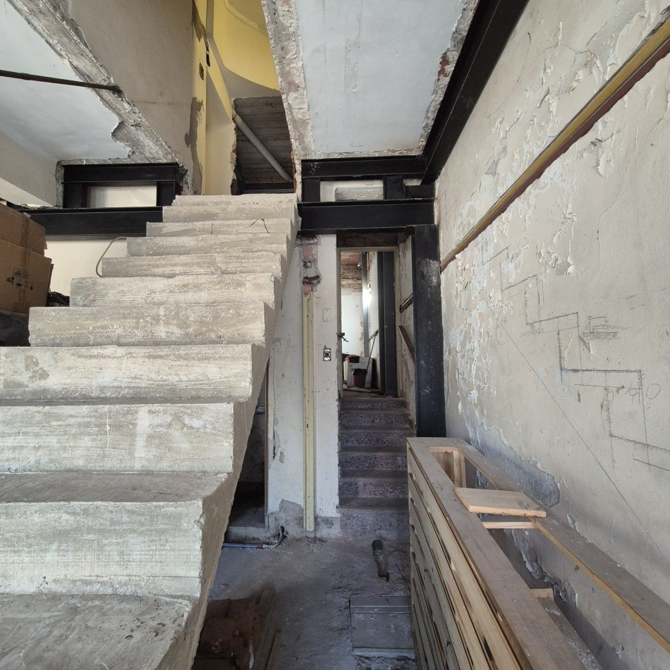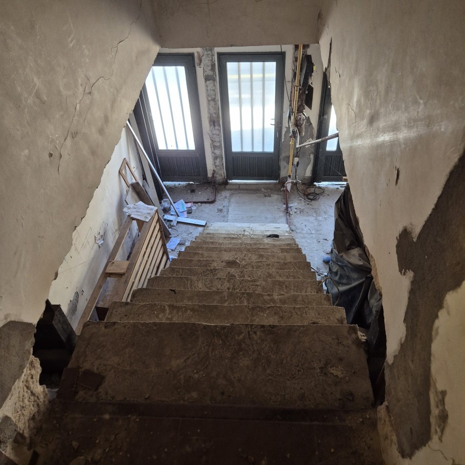 La propiedad debe ser restaurada en su totalidad, por lo que ofrece diferentes posibilidades, por un lado se puede unificar toda la estructura edilicia en una sola vivienda, dejando abajo el área social (living, gran estar comedor, cocina y baño) y en la planta superior el área privada (dormitorios y baño). Otra opción es subdividir en dos unidades independientes, logrando así 2 viviendas.