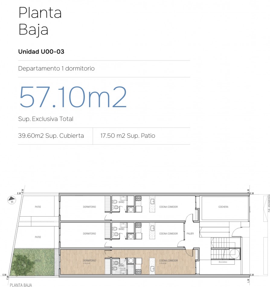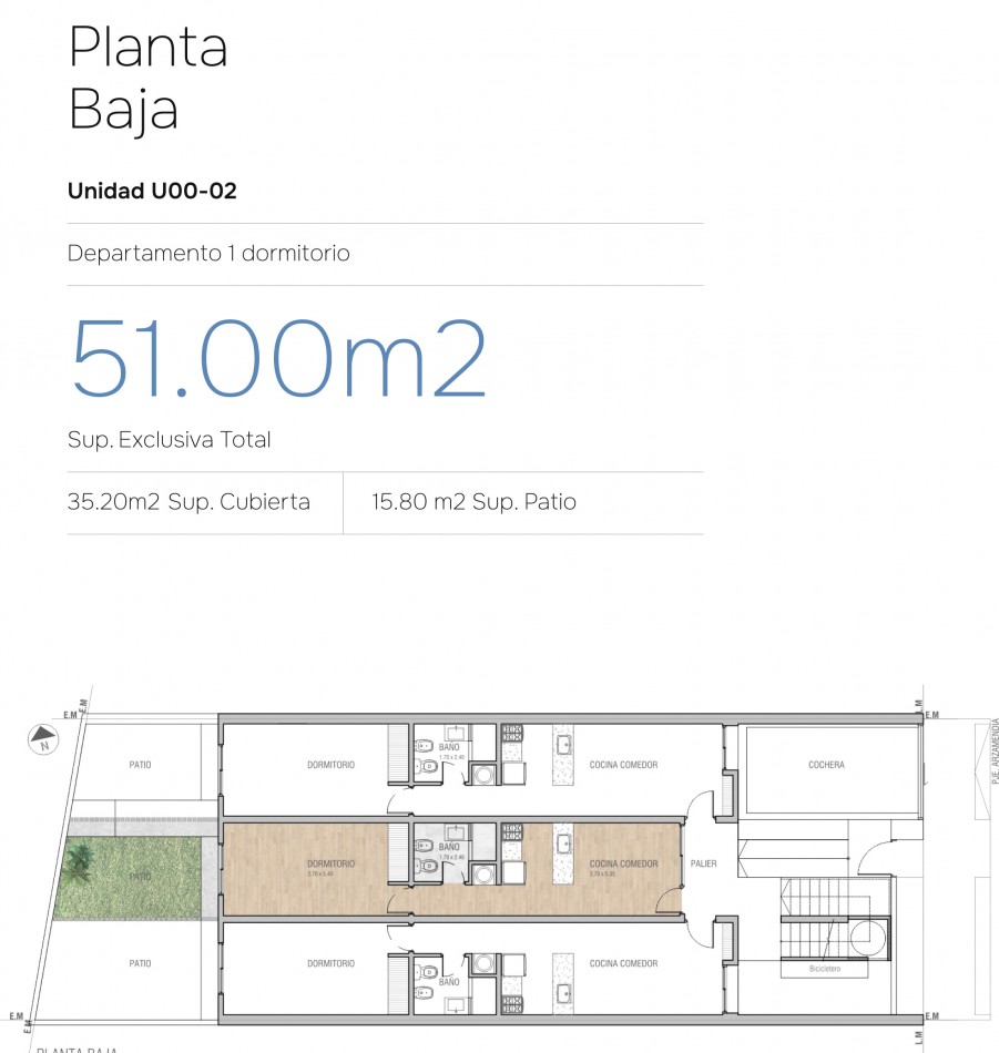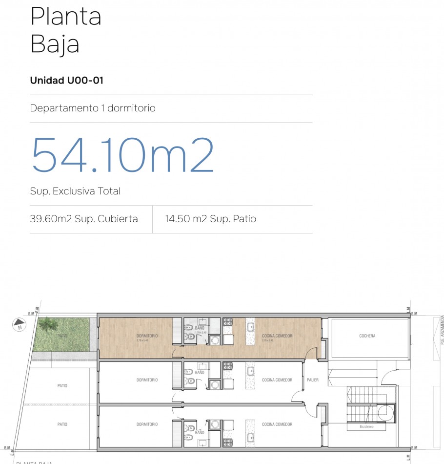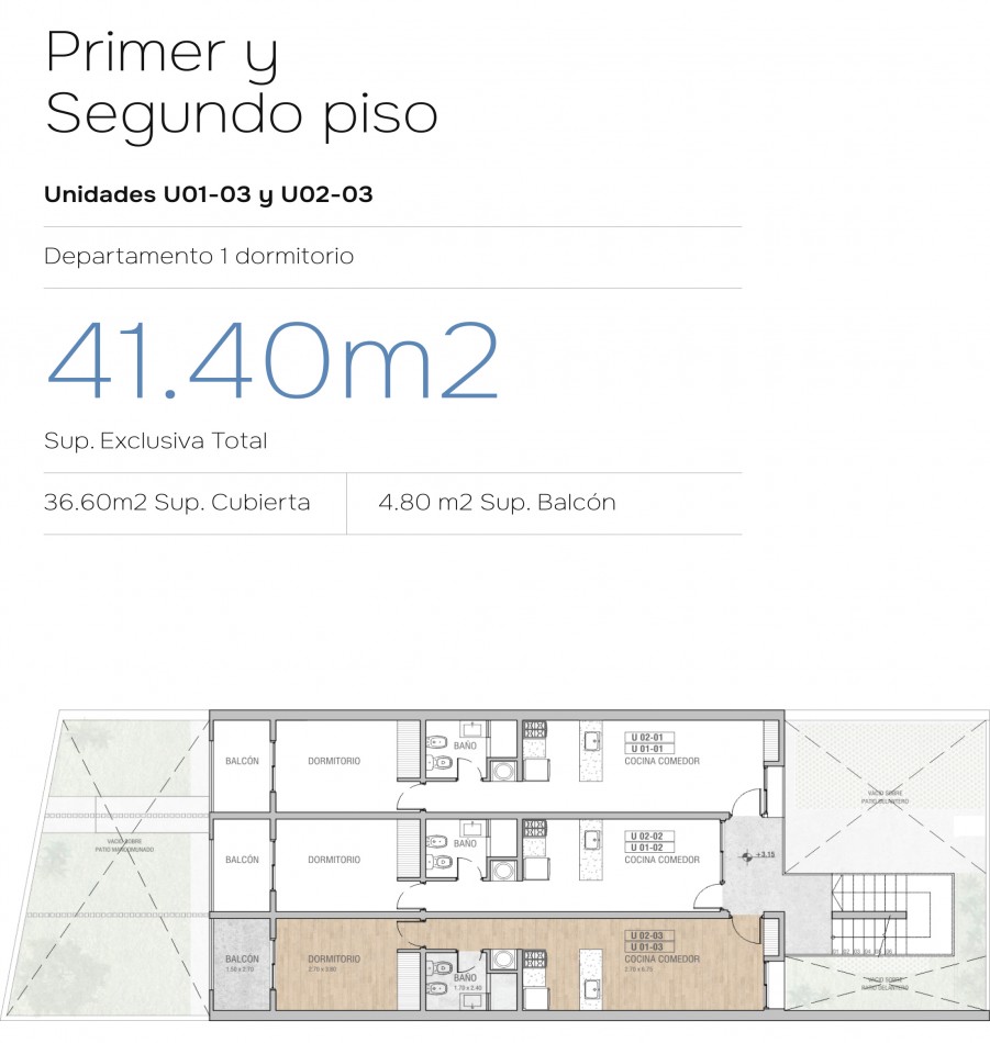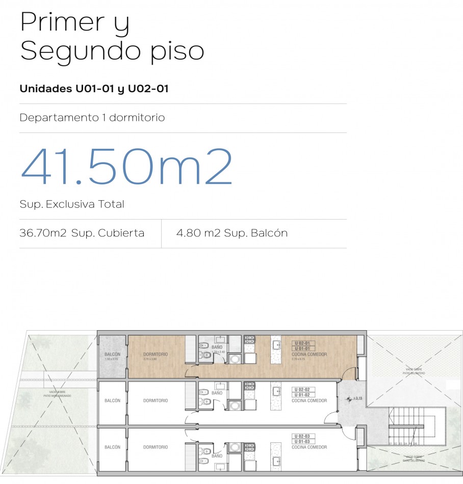Departamentos de 1 dormitorio en planta baja, primer y segundo piso. Cuentan con estar - comedor, cocina, un dormitorio, baño y patio o balcón. Posibilidad de cochera.