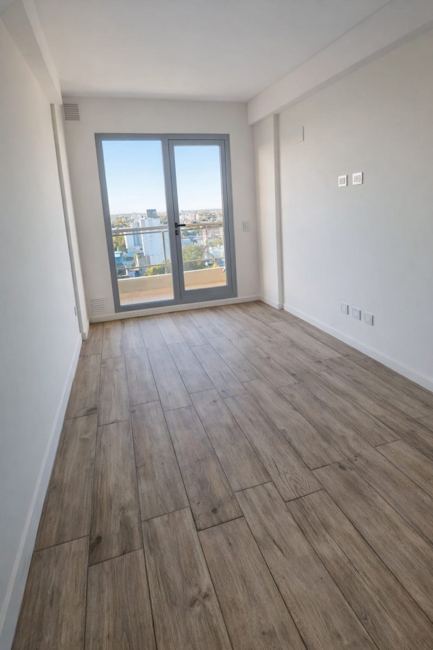 Además cuenta con amplio estar comedor, balcón con vista panorámica de la ciudad, cocina sectorizada con barra, dormitorio con placard y baño completo.