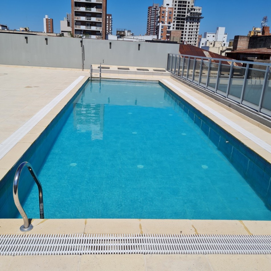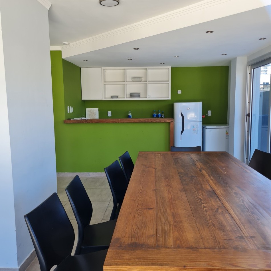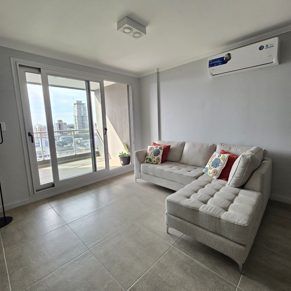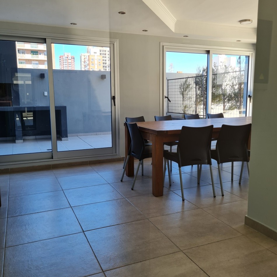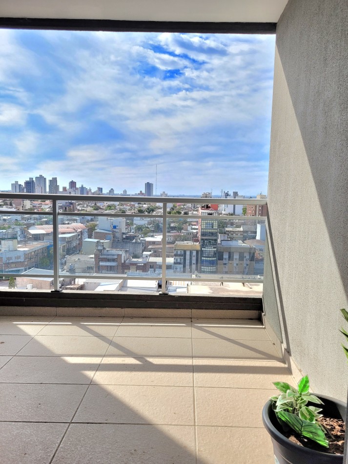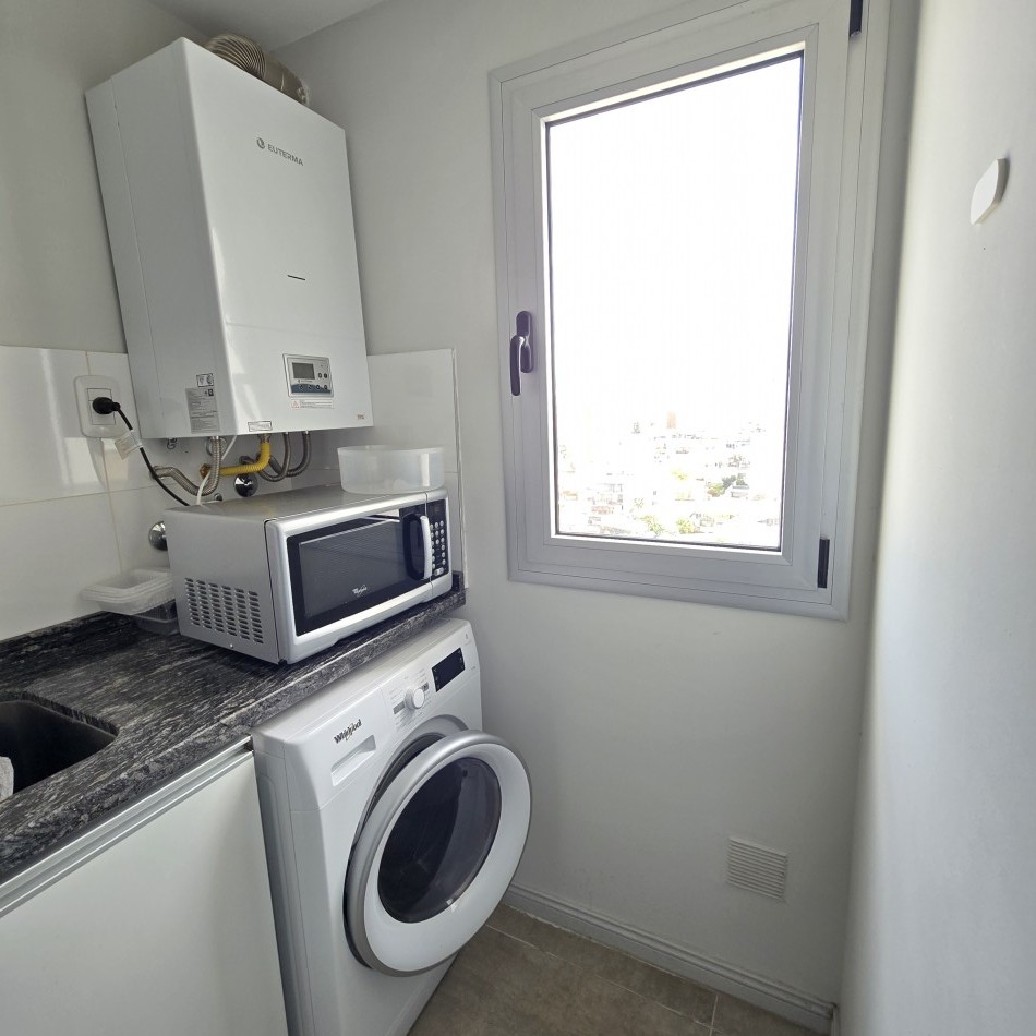 Dpto de categoría muy bien ubicado y muy luminoso. Consta de dos dormitorios (uno en suite) dos baños, cocina lavadero, amplio estar comedor, y un cómodo balcón. Cochera de fácil acceso. Se encuentra en piso alto al frente, con orientación noreste. Las terminaciones y los materiales del mismo son de excelente calidad, aberturas de aluminio de alta prestación, vidrios DVH, sistema de calefacción por radiadores, placares en ambos dormitorios, puerta de ingreso de seguridad, sistema de energía solar para el agua caliente. El edificio además cuenta con amenities, posee una gran pileta, dos SUM completos con asador y sanitarios, 3 ascensores y un imponente hall de ingreso. Listo para entrar a vivir. Posibilidad de vender amueblado.